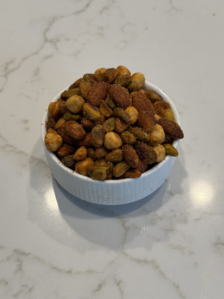 My wife decides to buy heart healthy nuts from Costco to promote good eating. Raw, unsalted, bland and blah. Her definition of ‘good eating’ is different than mine, so lets spice things up! |